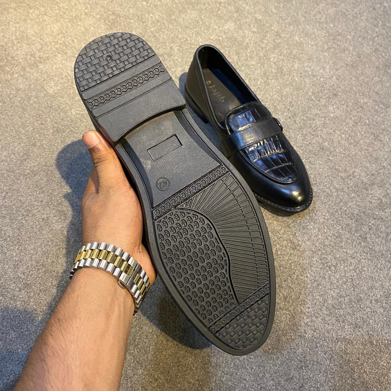 Men Leather Loafers Crocodile Black Edition